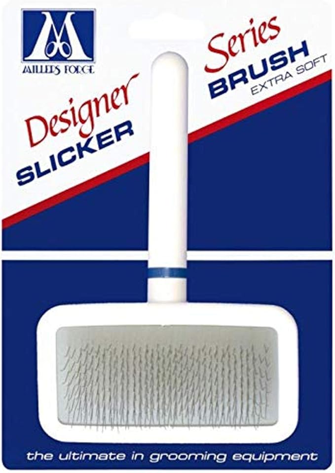 - Soft slicker pet grooming brush feature sleek european styling, an extremely light handle shaped for comfort and high-quality stainless steel pins
