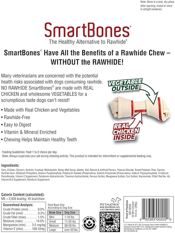 - HELPS MAINTAIN HEALTHY TEETH: SmartBones chews have all the benefits of a rawhide chew without the rawhide – chewing helps maintain healthy teeth.