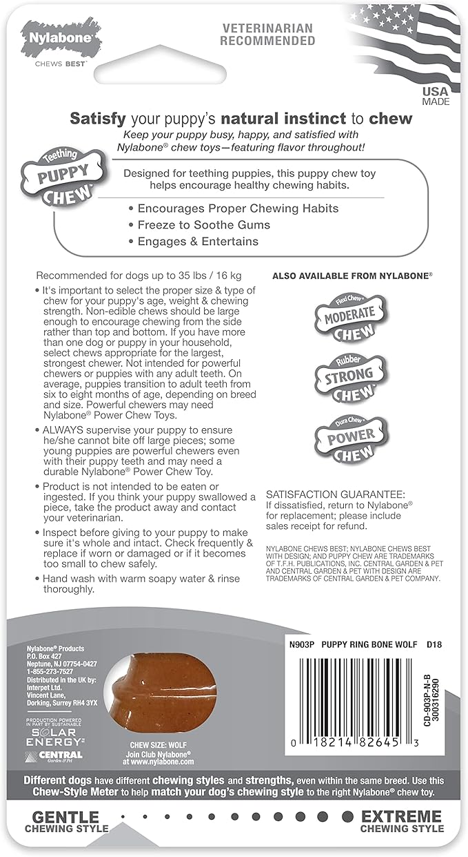 Nylabone Puppy Ring Bone Chew Toy - Puppy Chew Toys for Teething - Puppy Supplies - Chicken Flavor, Medium/Wolf (1 Count)