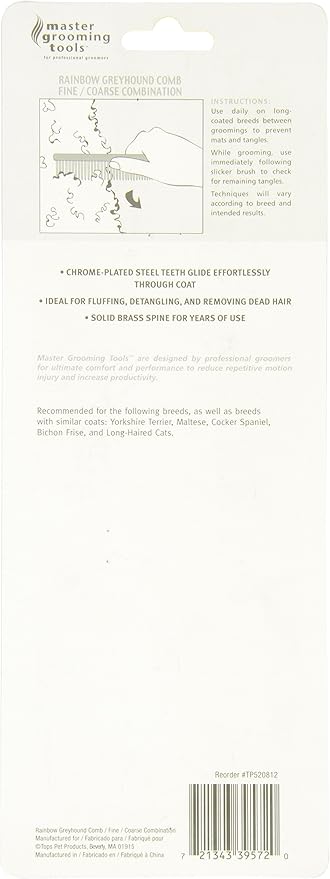 Master Grooming Tools Rainbow Greyhound Combs — European-Style Combs for Grooming Dogs - Fine/Coarse, 7½", Medium, blue