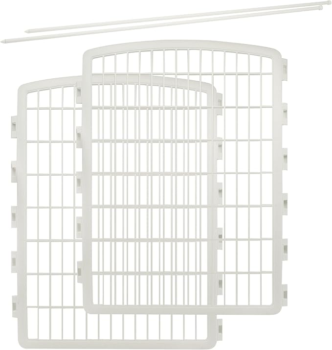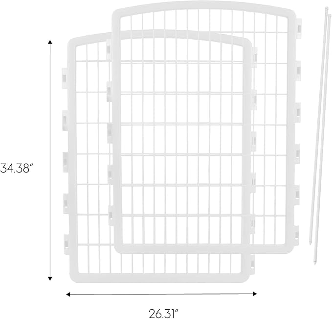 IRIS USA 34'' Pet Playpen 2 Panel Add-On with Connecting Rods, Dog Playpen, Puppy Small Medium Dogs, Heavy-Duty Molded Plastic, Rust-Free, Non-Skid Rubber Feet, Easy Assemble, Customizable, White