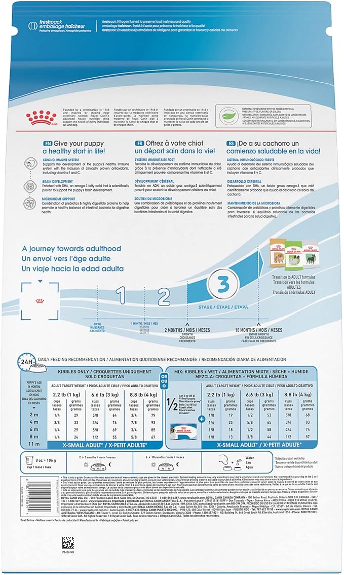 - TOY BREED PUPPY FOOD: Royal Canin X-Small Breed Dry Puppy Food for puppies 2 to 10 months with an expected adult weight of no more than 8 lbs
