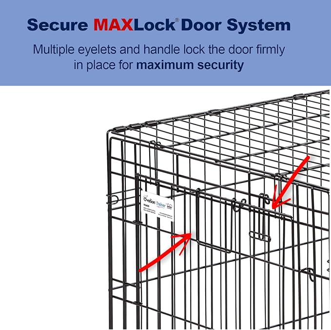 - The Ovation Trainer dog crate features a front door for training your puppy & a garage style side door to use after your dog / puppy is crate trained