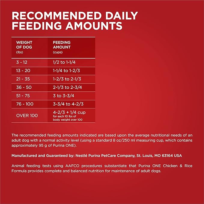 - Is Purina ONE good for dogs? Purina red bag dog food provides 100 percent complete and balanced nutrition for adult dogs and features natural glucosamine sources to promote joint health for dogs