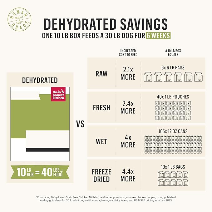 - LIMITED INGREDIENT, FREE RANGE CHICKEN: With just six whole food ingredients, The Honest Kitchen Limited Ingredient Chicken dog food is made especially for dogs with food sensitivities or allergies.