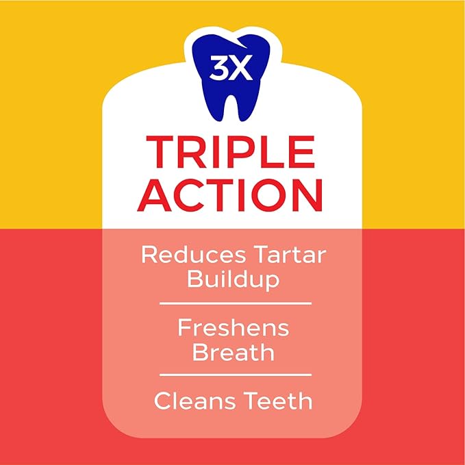 - PEDIGREE DENTASTIX Triple Action acts as a dog breath freshener that works to clean teeth and freshen breath, and has a clinically proven texture that reduces plaque and tartar buildup