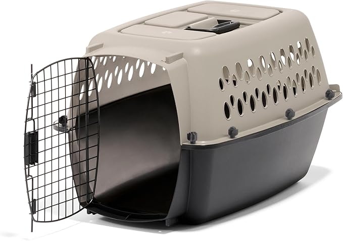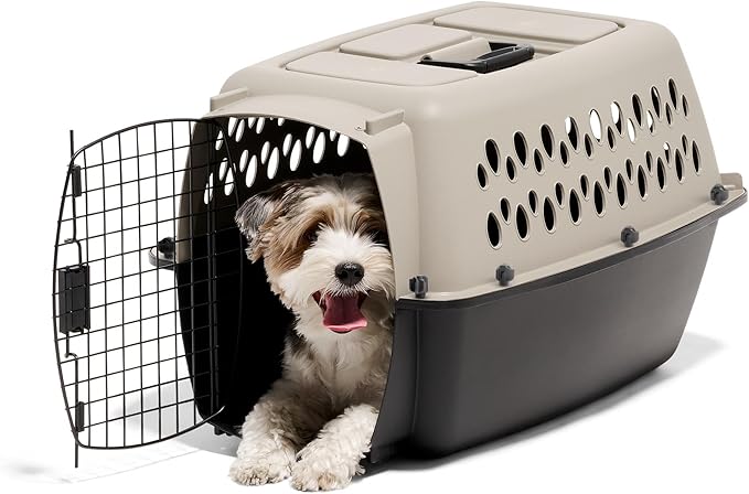 Petmate Vari Dog Kennel - Portable Crate for Pets 10-20 lbs - Airline-Friendly Pet Carrier - Durable Plastic Shell - For Home and Travel - Made in USA - 24 Inches - Taupe and Black