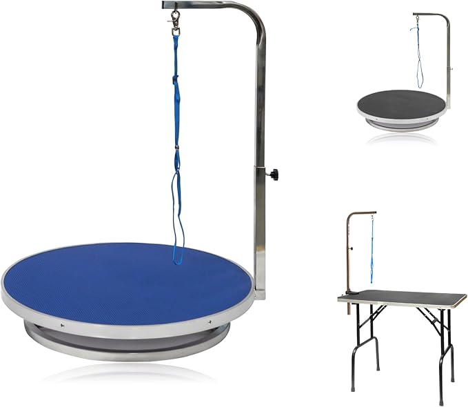 - CUSTOMIZABLE AND ADJUSTABLE: This grooming table’s base has a rotatable feature, making it easy to work on different areas of your pet’s fur. This is controlled with an adjustable dial, allowing you to keep your pet safe during your grooming sessions. Our grooming tables also come in an adjustable grooming arm that allows you to find the perfect height for your pet, ensuring they are kept safe during grooming. Additionally, the detachable grooming arm allows for repositioning, giving you more options when grooming your pets.