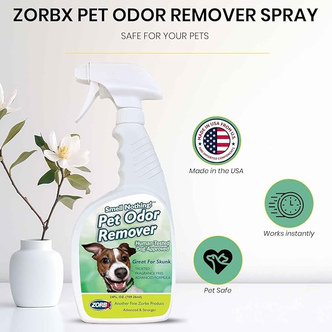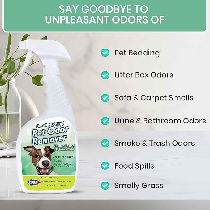 - REMOVES PET ODORS PERMANENTLY: Long gone are the days when pets were not allowed inside the house. Now, they cuddle with us on a sofa, snuggle with us in our beds and even go to dinner with us at our favorite restaurant. However, once they start smelling stench, it isn't easy to enjoy their company. So, what to do? Try ZORBX odor remover spray to keep your pet smelling fresh and clean.
