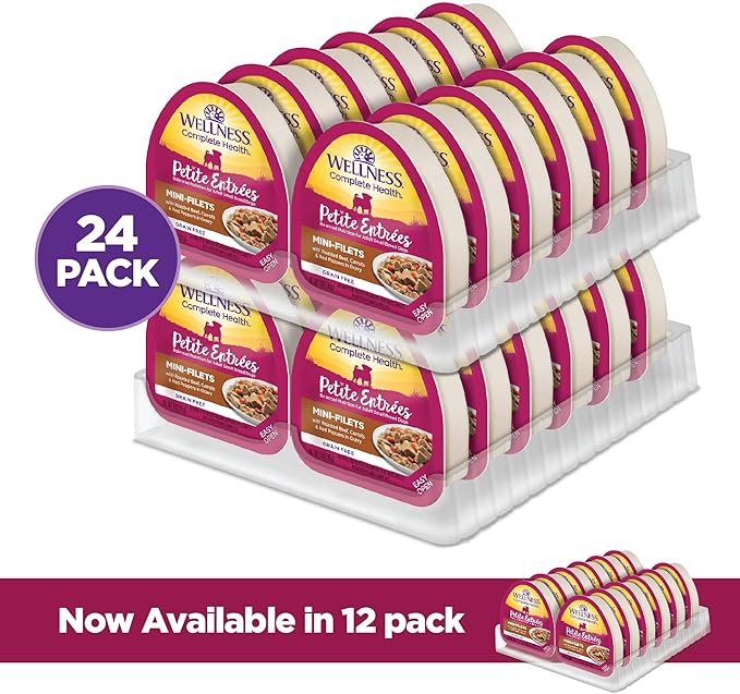 Wellness Petite Entrees Mini Fillets Grain Free Natural Wet Small Breed Dog Food, Roasted Beef, Carrots & Red Peppers, 3-Ounce Cup (Pack of 24)