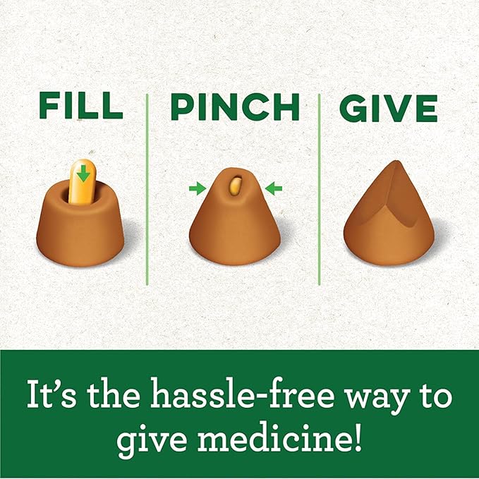 - Tuck the pill or capsule into the built in pocket and your dog gets medication along with a tasty flavored treat