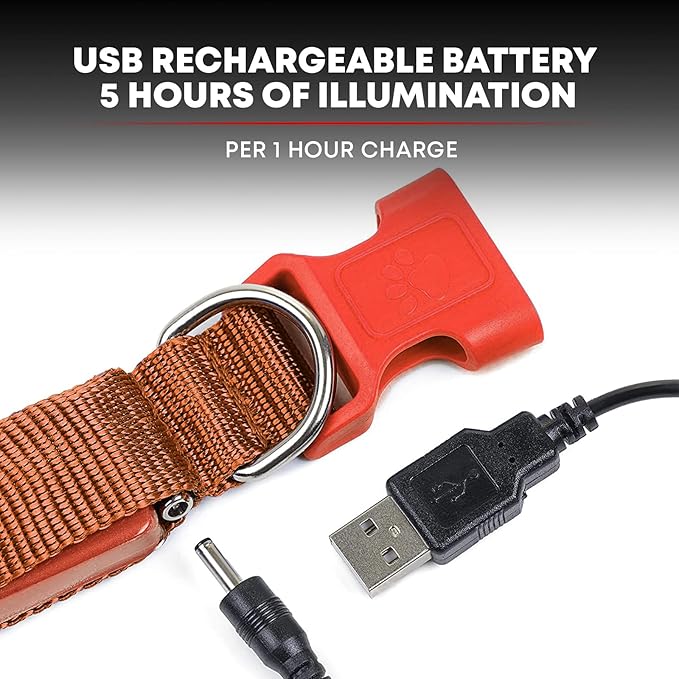 ILLUMISEEN LED Dog Collar USB Rechargeable - Bright & High Visibility Lighted Glow Collar for Pet Night Walking - Weatherproof, in 6 Colors & 6 Sizes (Red Large)