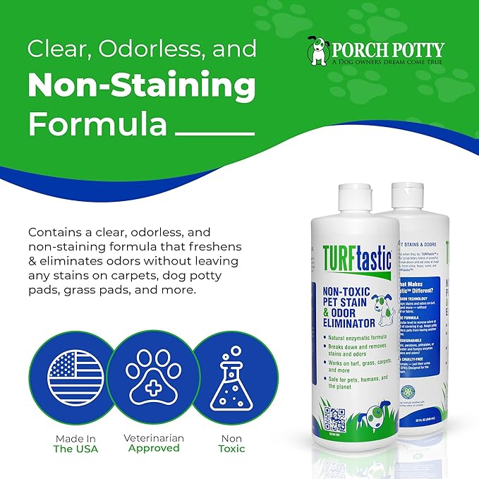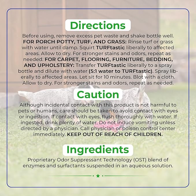 - ๐๐จ๐ฐ ๐ญ๐จ ๐ฎ๐ฌ๐ ๐๐๐๐ ๐ญ๐๐ฌ๐ญ๐ข๐: To use, rinse your potty as you normally would. Then, transfer TURFtastic to a spray bottle and spritz the grass moderately while the potty is still damp. Allow TURFtastic to dry.