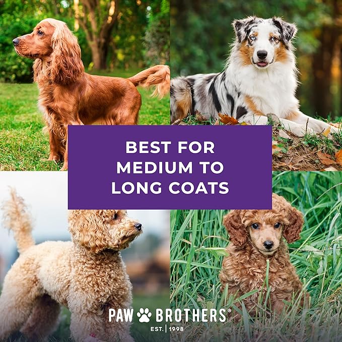 - FLAT SLICKER - The Paw Brothers Coated Pin Flat Slicker Brush is an essential tool for anyone who wants to keep their pet's coat looking and feeling its best. With its durable construction and superior performance, this brush is sure to become a staple in your grooming routine.