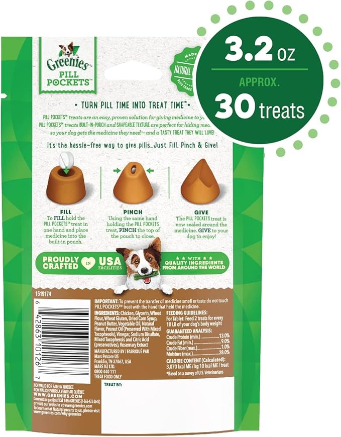 Greenies Pill Pockets Treats for Dogs, 9.6 Ounces, Real Peanut Butter Flavor