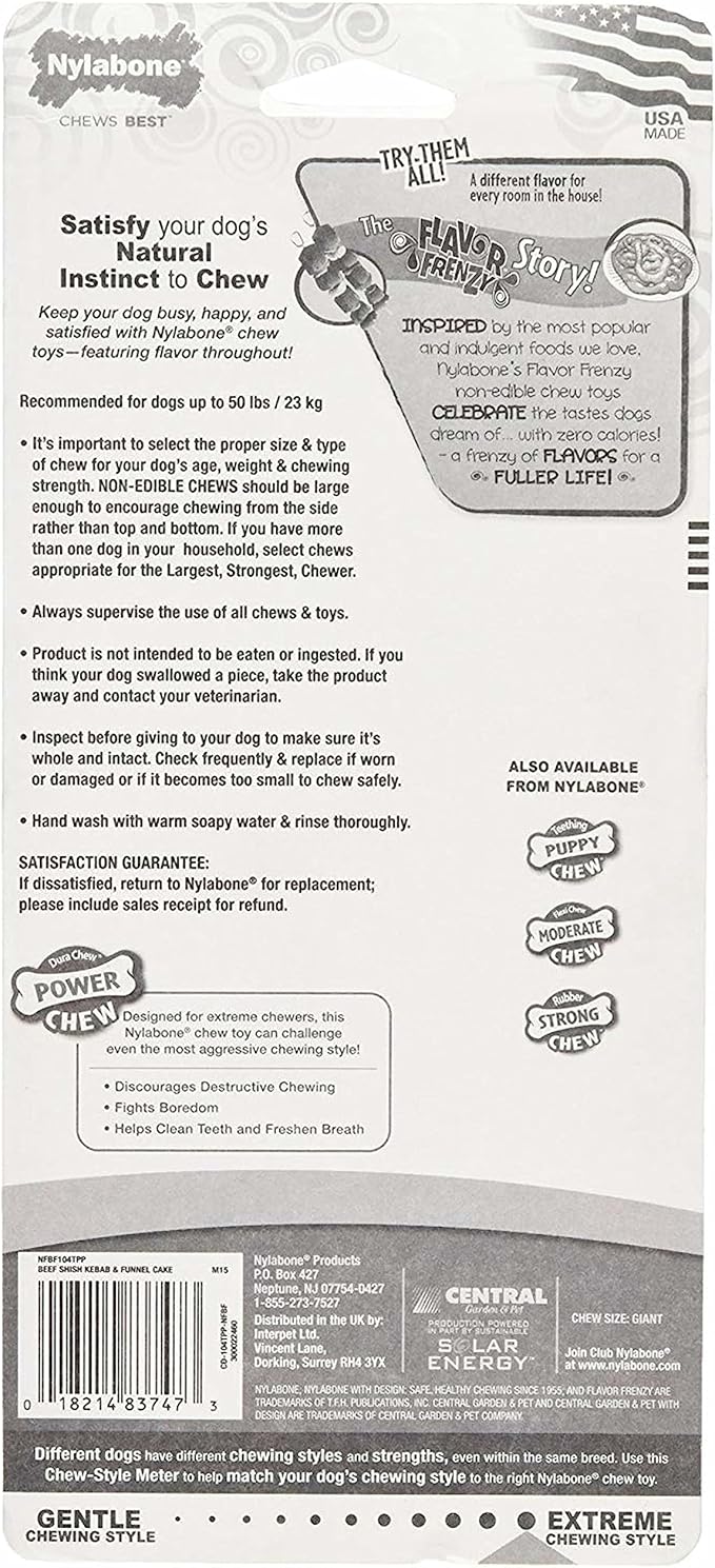 Nylabone Power Chew Flavor Frenzy Bone Chew Toy for Dogs, Indestructible Chew Toys for Aggressive Chewers, Funnel Cake & Shish Kabob Flavor, Large/Giant - Up to 50 lbs. (2 Count)