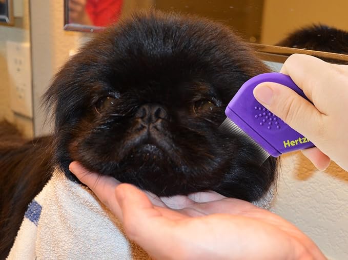 Long Teeth Comb by Hertzko - Closely Spaced Metal Pin for Your Pet’s Coat - 25mm Long Metal Teeth are Great for Long Hair Areas on Dogs and Cats (Short Teeth)