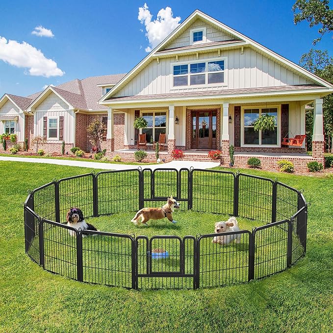 Yaheetech Dog Playpen Outdoor, 24 inch 16 Panels Dog Pen Indoor Heavy Duty Puppy Exercise Pen Metal Pet Fence for RV Camping/Yard/Garden