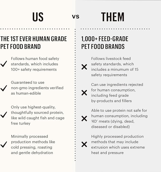 - HUMAN GRADE: Unlike most pet food, this recipe is 100% human grade – made with human grade ingredients & produced in a human food facility. That means higher quality ingredients & more safety standards, just like you'd expect from your own food.