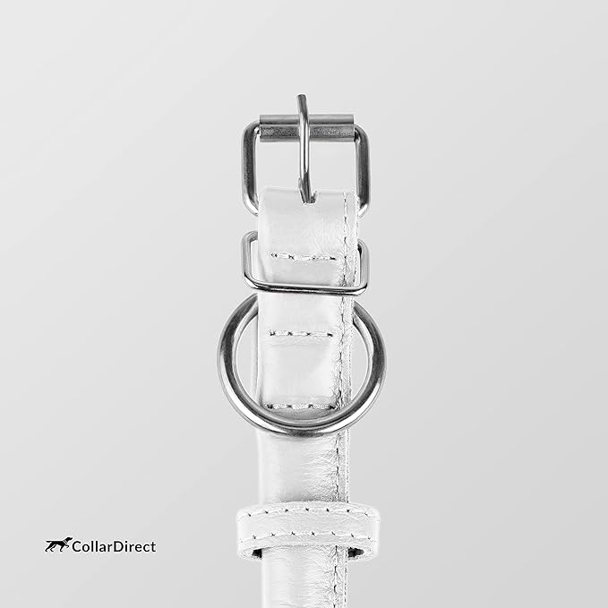 CollarDirect Rolled Leather Dog Collar, Soft Padded Round Puppy Collar, Handmade Genuine Leather Collar Dog Small Large Cat Collars 13 Colors (15-19 Inch, White Textured)