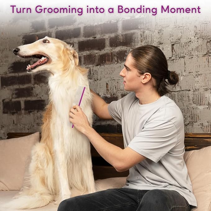The pet grooming brush works wonders on my golden retriever’s thick coat. It removes loose fur effortlessly and my dog actually enjoys being brushed now.