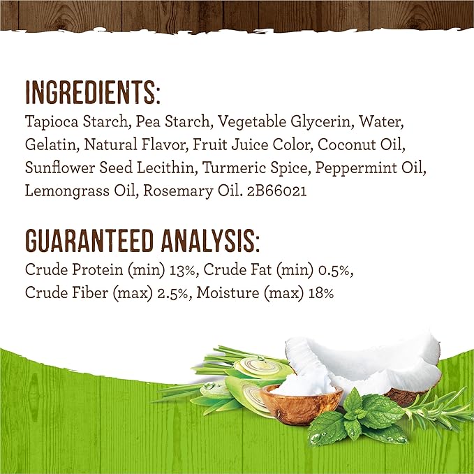- Dental dog chews with coconut and botanical oils are easily digestible and clean teeth and freshen breath with only 13 ingredients