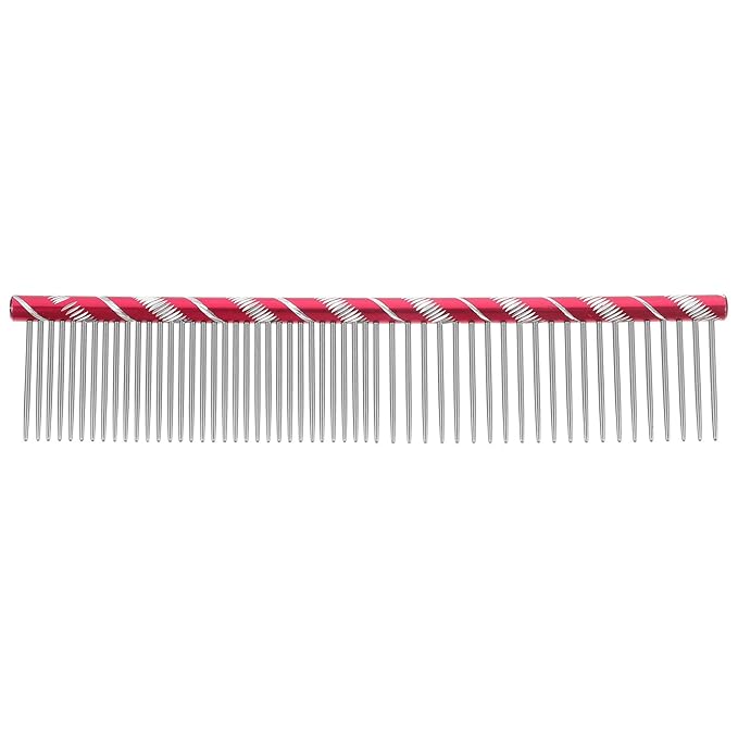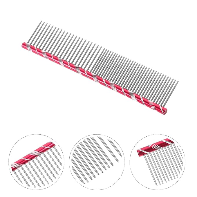 UEETEK Dog Grooming Comb : Stainless Steel Dog Combs with Rounded Ends for Dematting & Shedding, 2-in-1 Fine & Wide Tooth Design, 6.3 X 1.38 X 0.12 Inch (Rose Red)