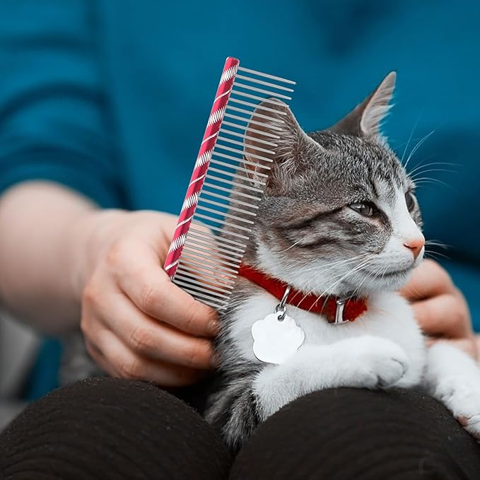 - Cat Grooming Comb, The rounded ends of the stainless steel teeth ensure a gentle grooming experience, preventing skin irritation and discomfort while removing mats and loose hair