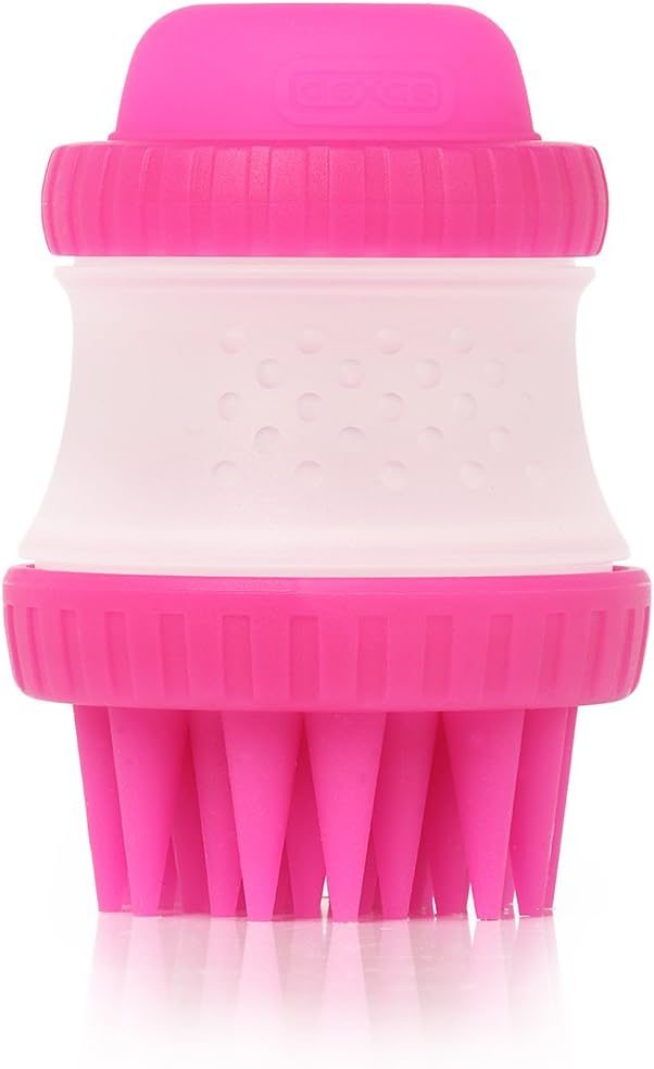Dexas ScrubBuster Silicone Dog Washing Brush with Built-in Shampoo Reservoir, Pink
