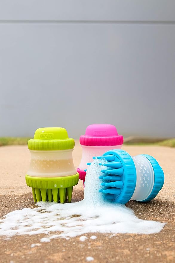 - This dog washing brush features gentle silicone bristles that dogs love! The Dexas ScrubBuster provides a quick and thorough washing of a dog’s coat
