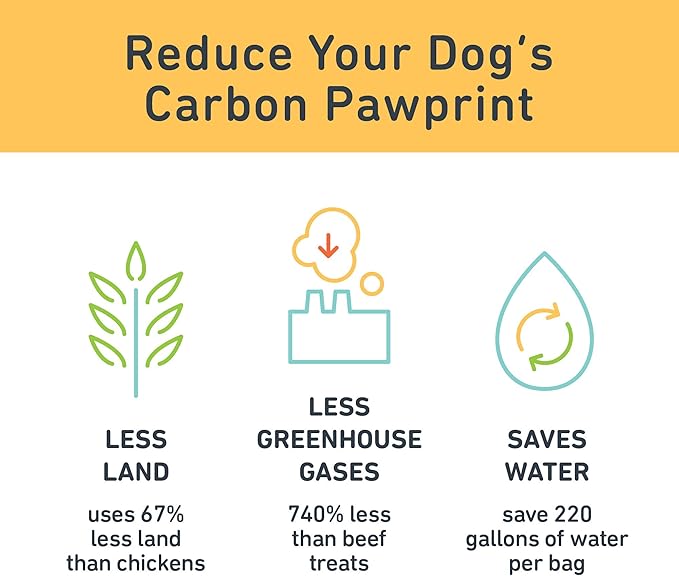 - REDUCING THE CARBON PAWPRINT - We make sustainability a priority! Insect protein uses less water & almost no greenhouse gases. Our treats save 200 gallons of water PER BAG compared to traditional products.