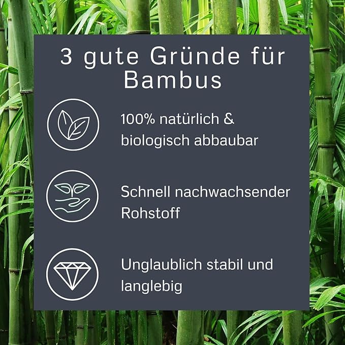 - Bamboo construction; handcrafted and then polished with a natural oil to ensure a smooth, water resistant finish