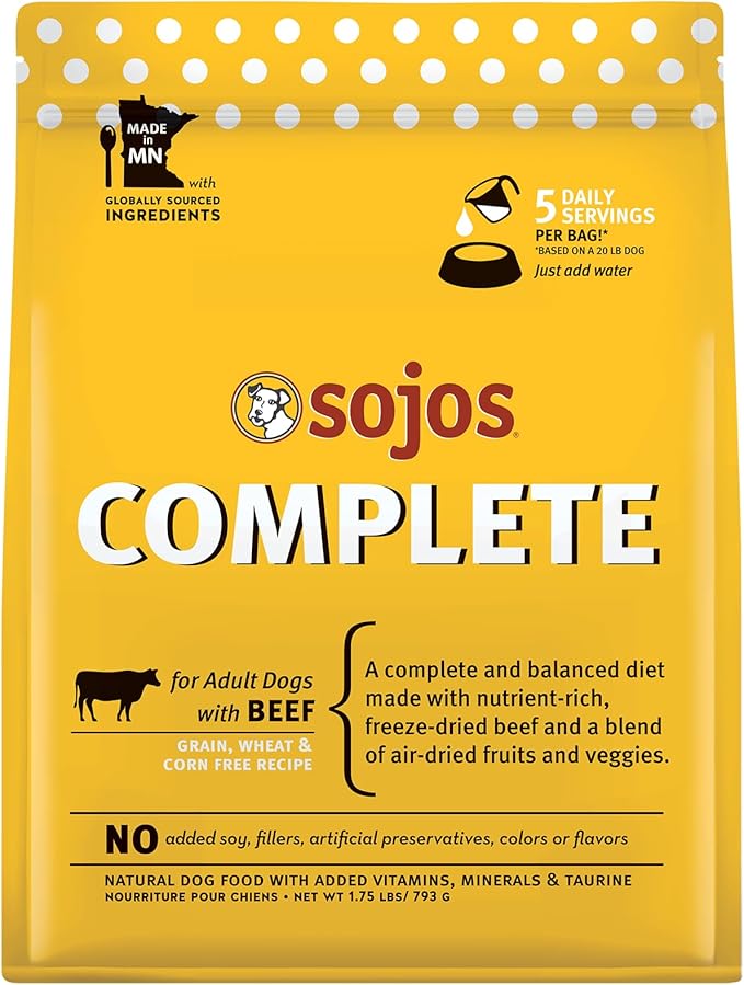- Sojos Complete. Everything dogs need, starting with meat #1.