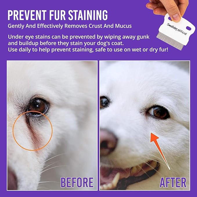 - DURABLE MATERIALS: This dog tear stain remover features rock solid design crafted from durable materials; This eye booger remover for dogs is designed by by real animals owners who are passionate about pet health; When you need a fine tooth comb for dogs that will hold up under any conditions, choose SmallDog Official