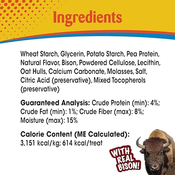 - DELICIOUS REAL BISON FLAVORS - Flavored dog treats contain delicious real bison flavors dogs love