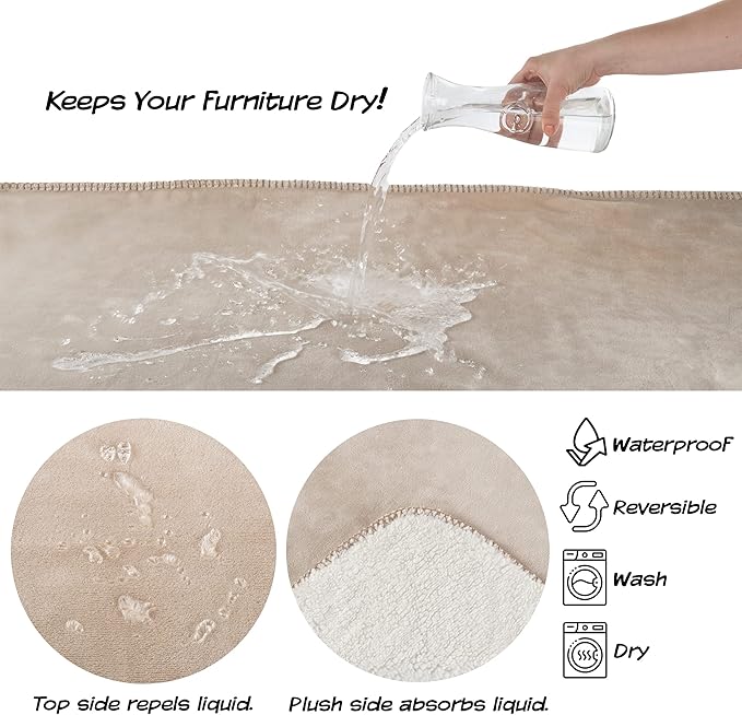 Waterproof Blanket for Dogs and Cats - Reversible 50x60 Throw for Couch, Bed, or Car Protection Against Spills, Stains, and Pet Fur by PETMAKER (Tan)