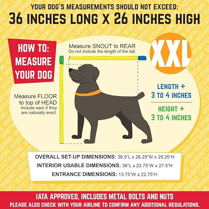 - Your dog’s measurements should be under 36" L x 26" H for 2XL kennel