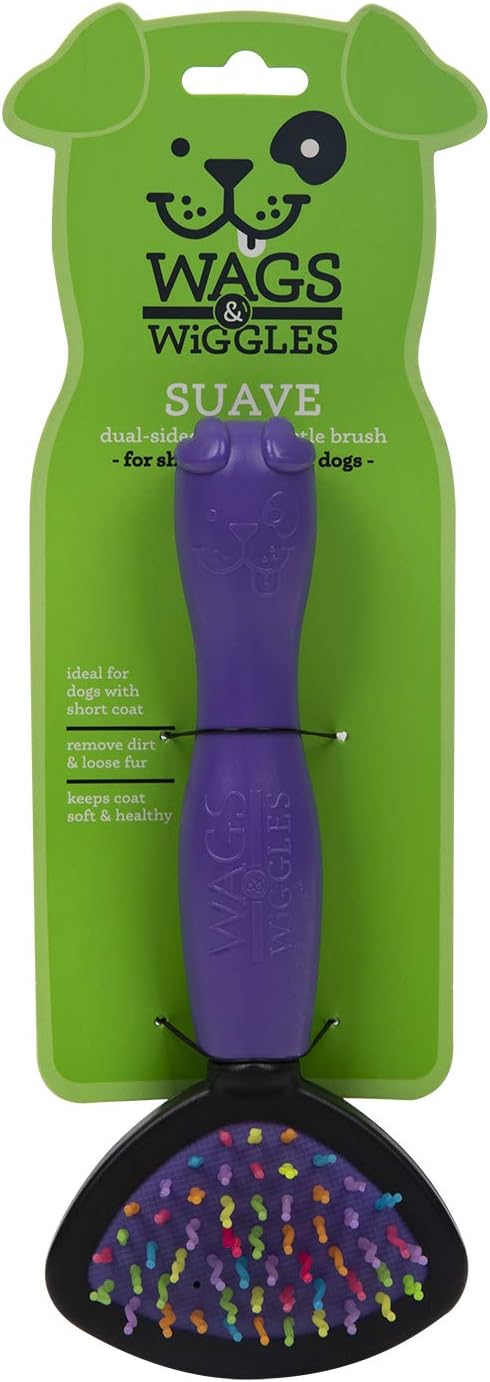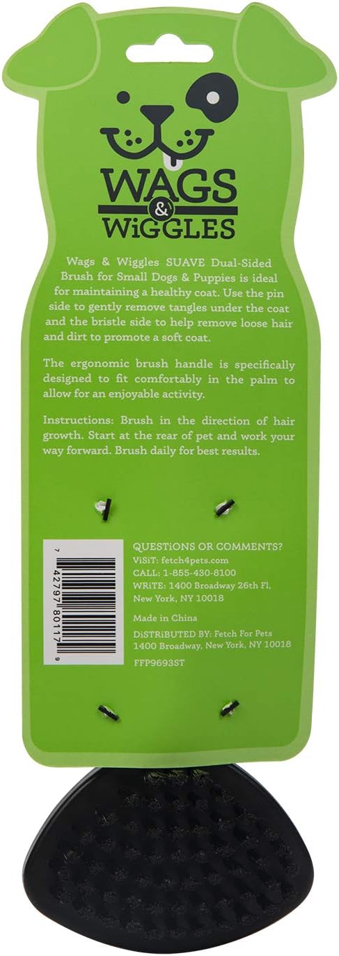 Wags & Wiggles Two-Sided Bristle and Squiggly Pin Brush for Small Dogs | Short Hair Dog Grooming Brush | Best 2-in-1 Grooming Supplies
