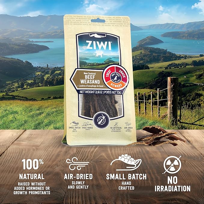 ZIWI Dog Chews and Treats – Beef Weasand - All Natural, Air-Dried, Single Protein, Grain-free, High-Value Treat, Snack, Reward 2.5 Ounce (Pack of 1)