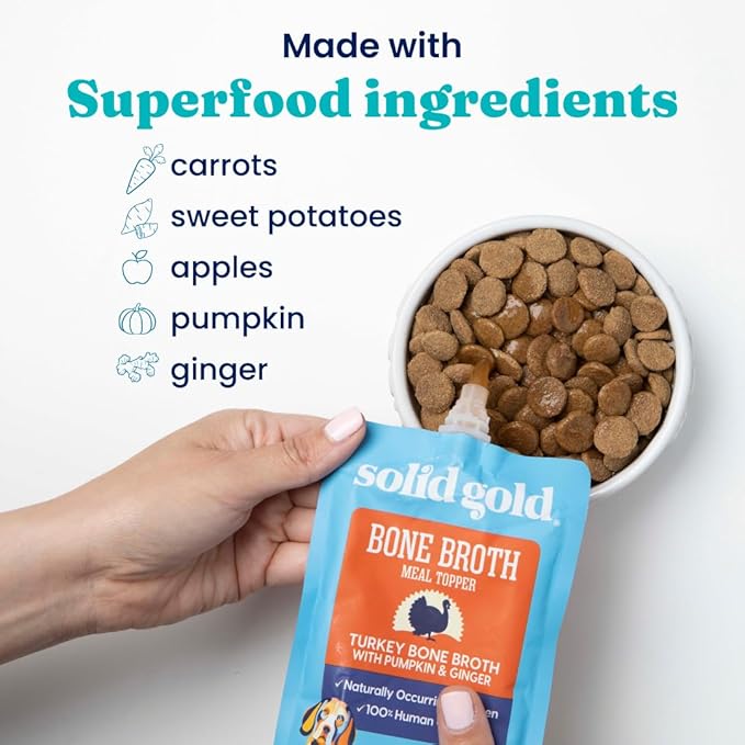 Solid Gold Turkey Bone Broth for Dogs - Grain Free Dog Food Topper Rich in Collagen and Superfoods - Nutrient Dense Dog Gravy Topper for Dry Food - Promotes Gut Health and Hydration - 12 Pack