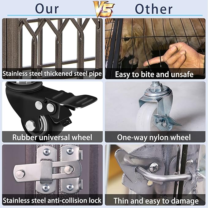 - 【Escape Proof Design】The special Y-pattern design of the heavy duty dog crate makes a beautiful and bite-proof shape to effectively prevent the dog's mouth from sticking out. Double lock with the safety buckles to prevent the dogs from escaping.