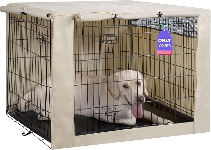 HiCaptain Polyester Dog Crate Cover - Durable Windproof Pet Kennel Cover for Wire Crate Indoor Outdoor Protection (36 inches, Light Tan)