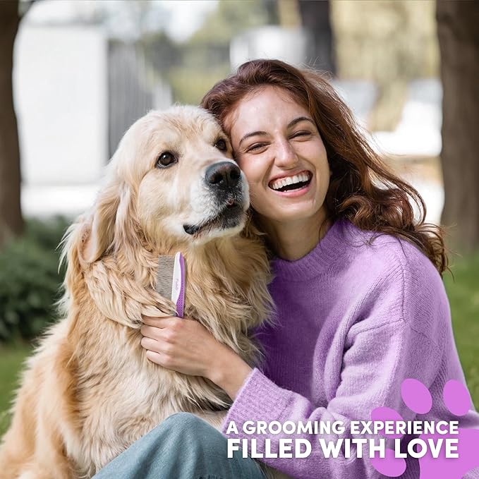 Poodle Pet Dog Combs for Grooming | 2 Pack | Stainless Steel Teeth Easily Remove Dirt | Proper Care Prevents Knots and Mats for Long and Short Haired Pets | Anti-Slip Comfort Grip Handle (Purple)