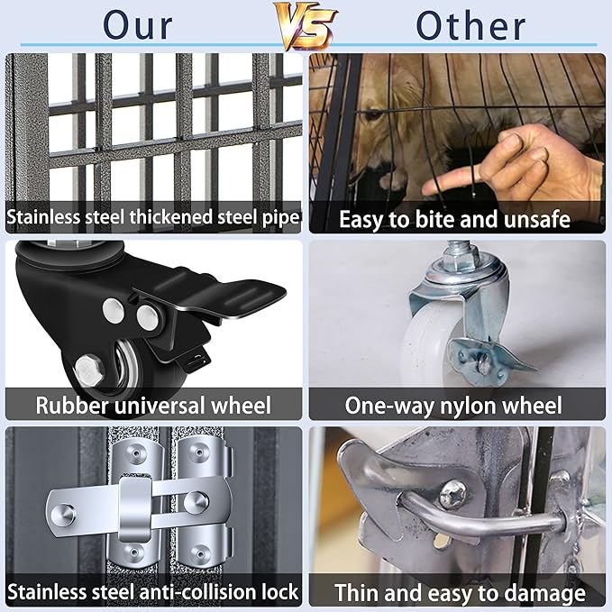 - 【Escape Proof Design】The special Y-pattern design of the heavy duty dog crate makes a beautiful and bite-proof shape to effectively prevent the dog's mouth from sticking out. THREE locks with the safety buckles to prevent the dogs from escaping.