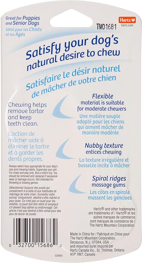 - CONTAINS: Contains one Hartz Chew ‘n Clean Twisty Bone dog toy. Other sizes available are extra small (for dogs under 10 lbs.) and small/medium (for dogs 10 to 50 lbs.).