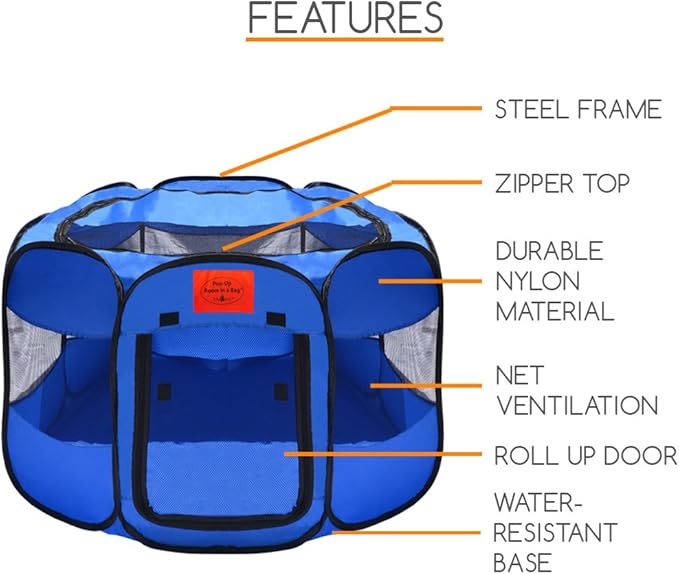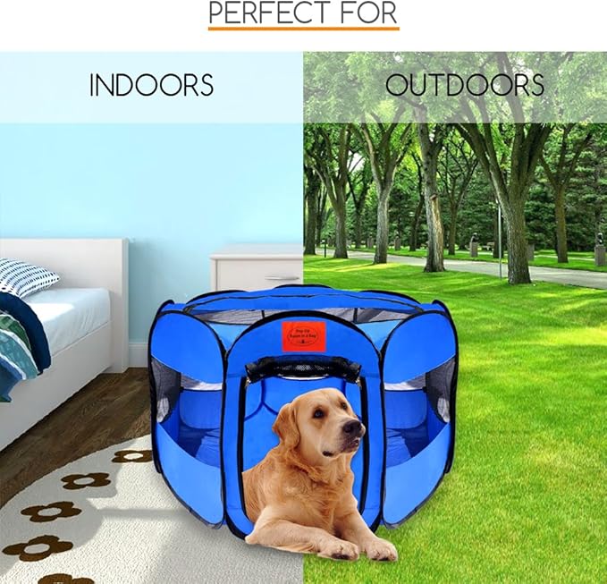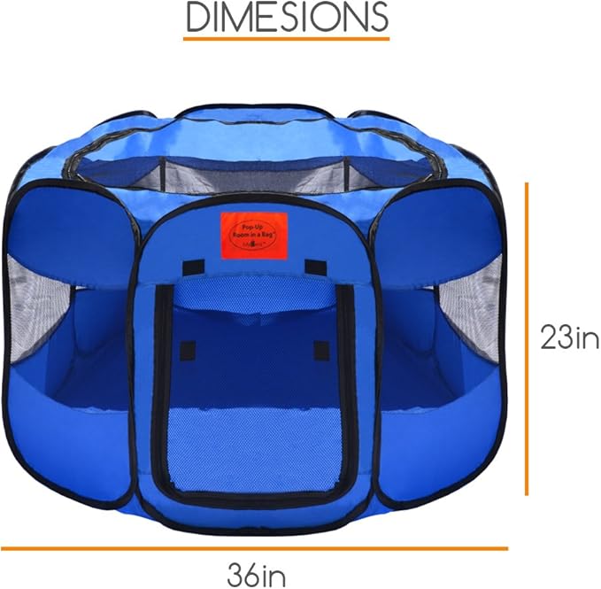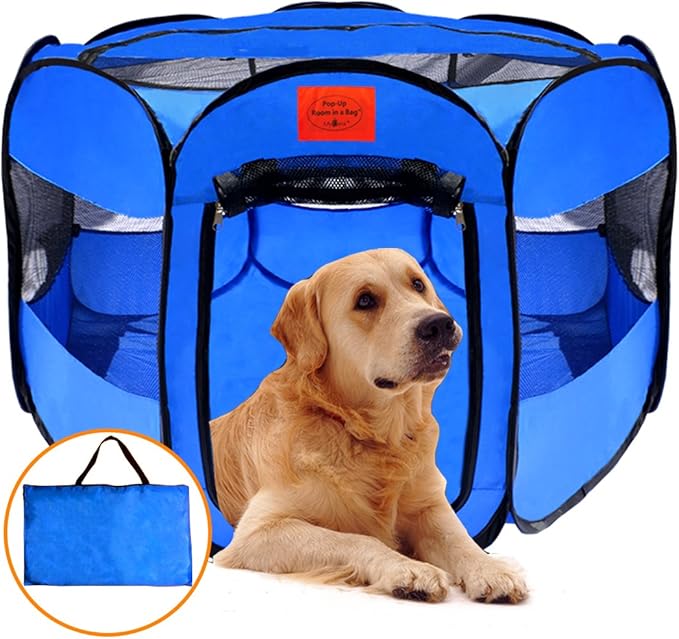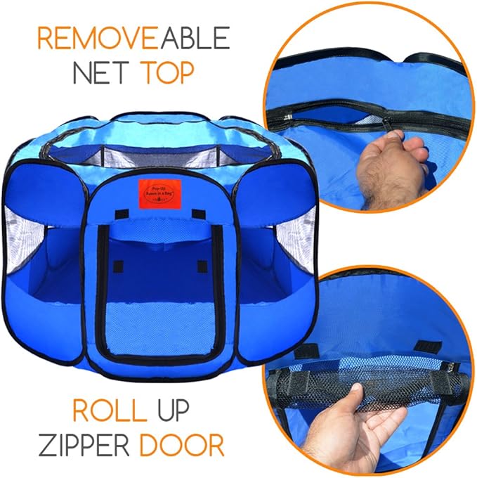 Pop Up Pet Exercise Play Pen Tent Portable Kennel with Weather Resistant Oxford Material, 8 Windows and Removable Zipper Top for Puppies Dogs Kittens Cats Rabbits + More! Includes Bag