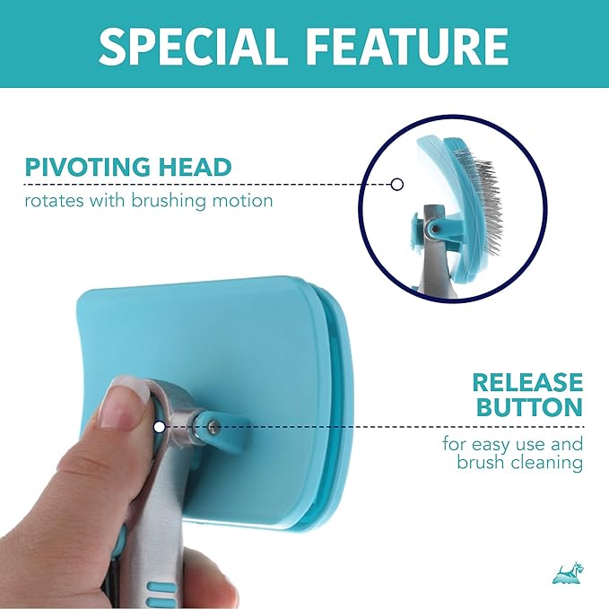 - PIVOTING AND CONTOURED BRUSH — Dog brush for shedding features a pivoting head which flows along and contours to your pet's body, brushing hard to reach areas, for dog brushes that make grooming easy