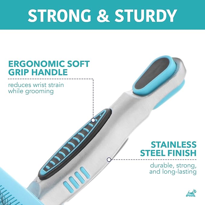 - ERGONOMIC SOFT GRIP HANDLE — The pet brush fur and lint remover features an ergonomic soft grip handle to ensure comfort while grooming, giving you comfortable and simple dog brushes for shedding