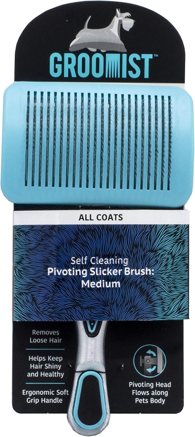 Ergonomic Pivoting Slicker Brush for Medium Dogs - Self Cleaning and Shedding Control for Loose Hair and Mats