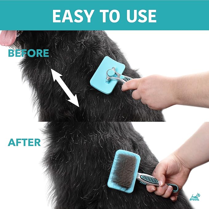 - SELF CLEANING BRUSH — Clean the pet brush in one easy step. Press the button on the back to release hair from the bristles, so you can have dog brushes for grooming that are efficient and convenient